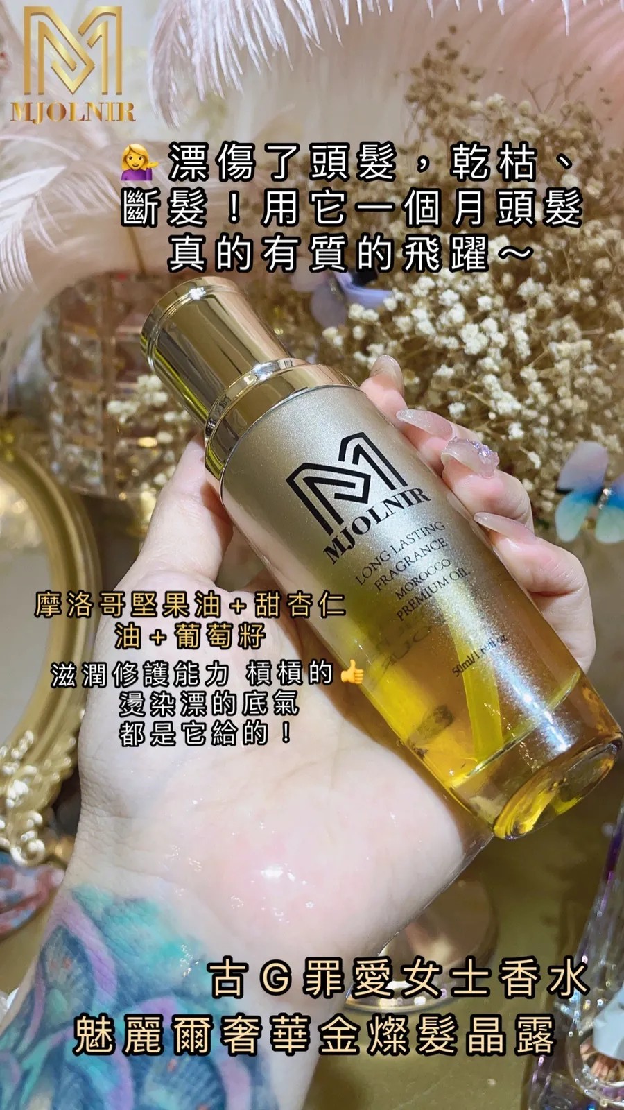 品名:魅麗爾奢華金燦髮晶露『圖片為新包裝』