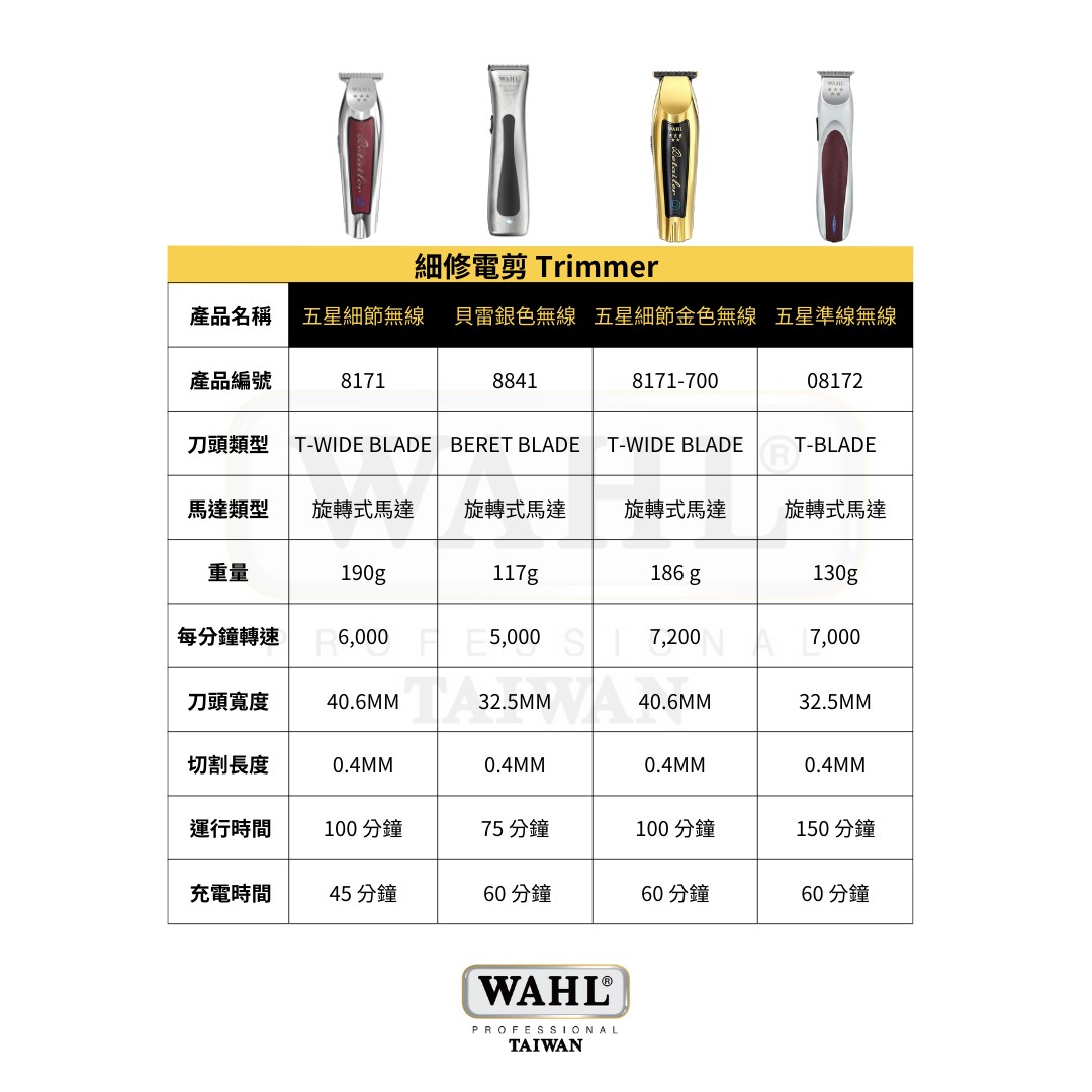 華爾WAHL-8171 T字刀頭小電剪 無線款 復古油頭雕刻剪